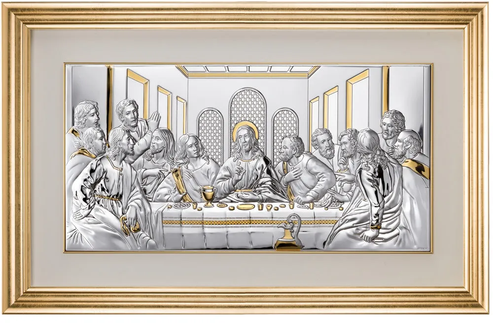 Cuadro religioso realizado en plata laminada sobre madera de alta calidad.