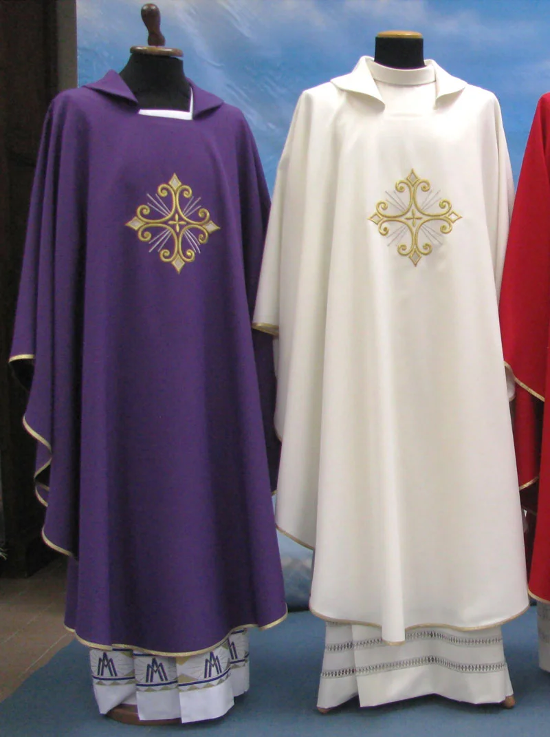 | Complementos | Opcional: Alba, dalmática, estola, estola diaconal y capa pluvial. |