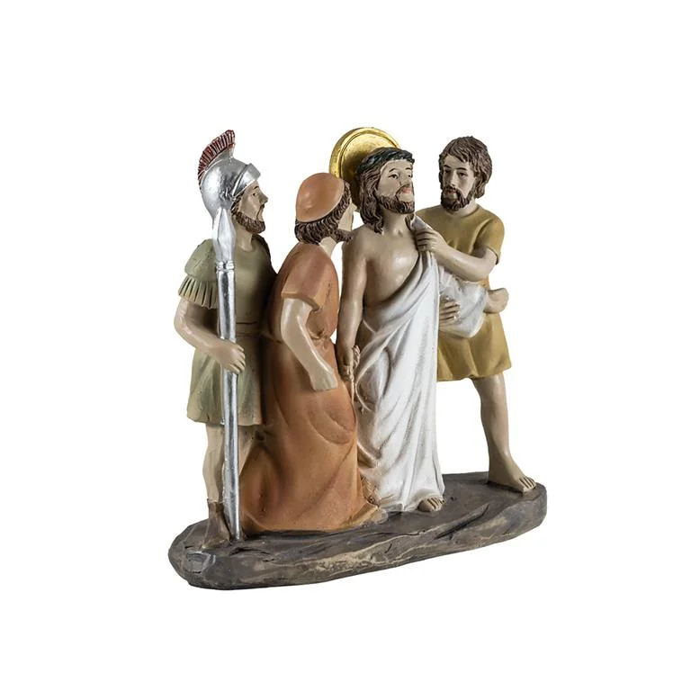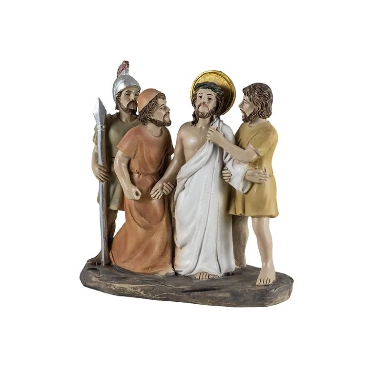 Representación sagrada en resina destaca por su cuidada elaboración artesanal.