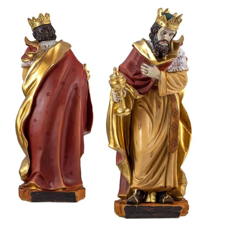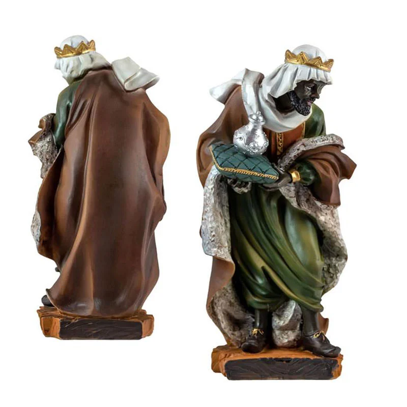 Preciosa escultura del Misterio con Reyes Magos, 6 piezas, realizada en resina decorada.