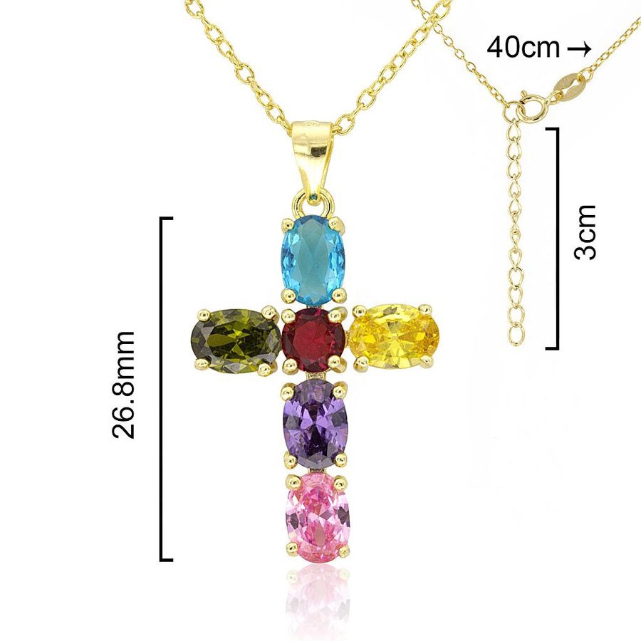 Choker. Includes cross with colors zircons. 925 Sterling silver, rhodium. Silver or gold plated finish.