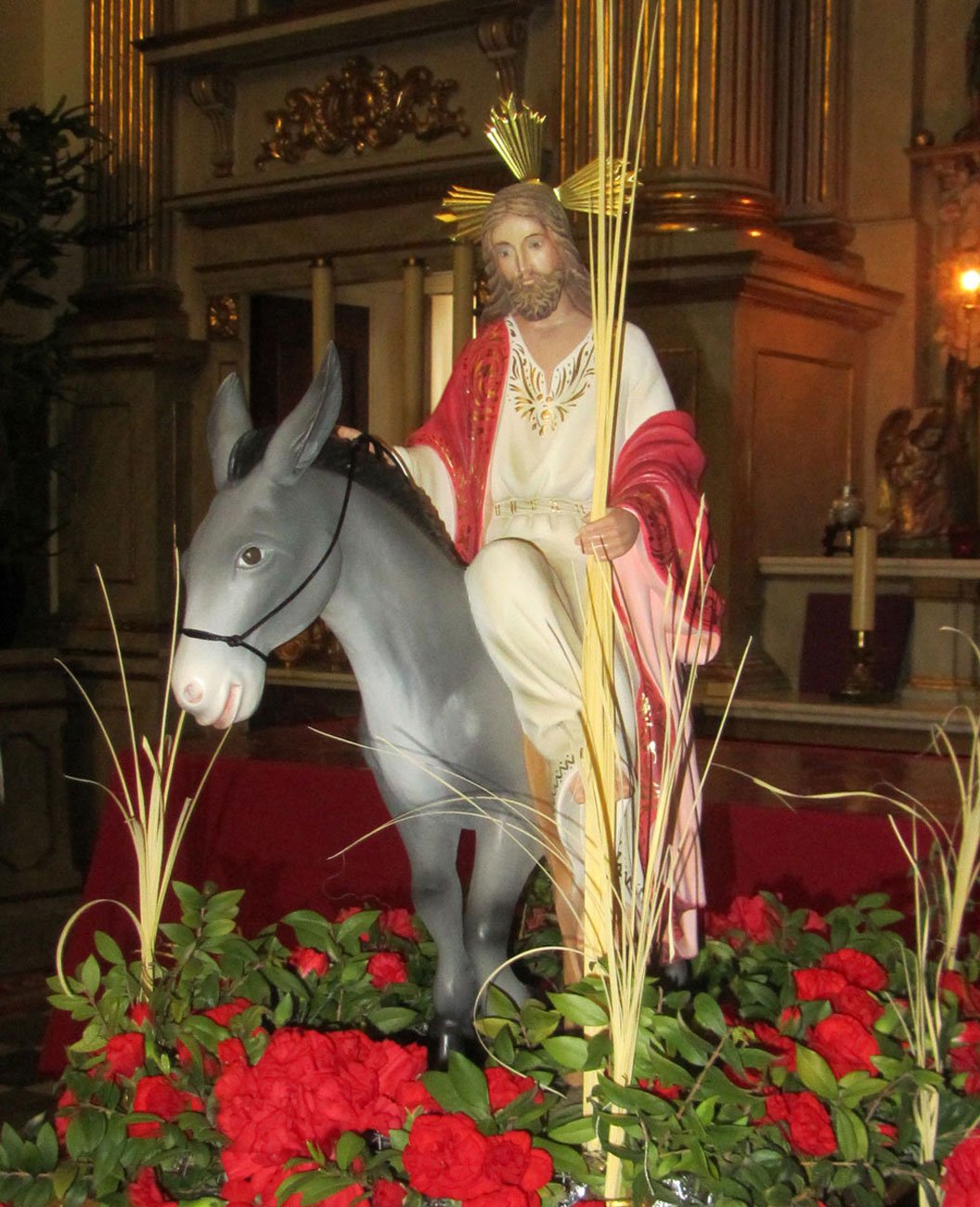 Jesus entry into Jerusalem. Little donkey. wood carving