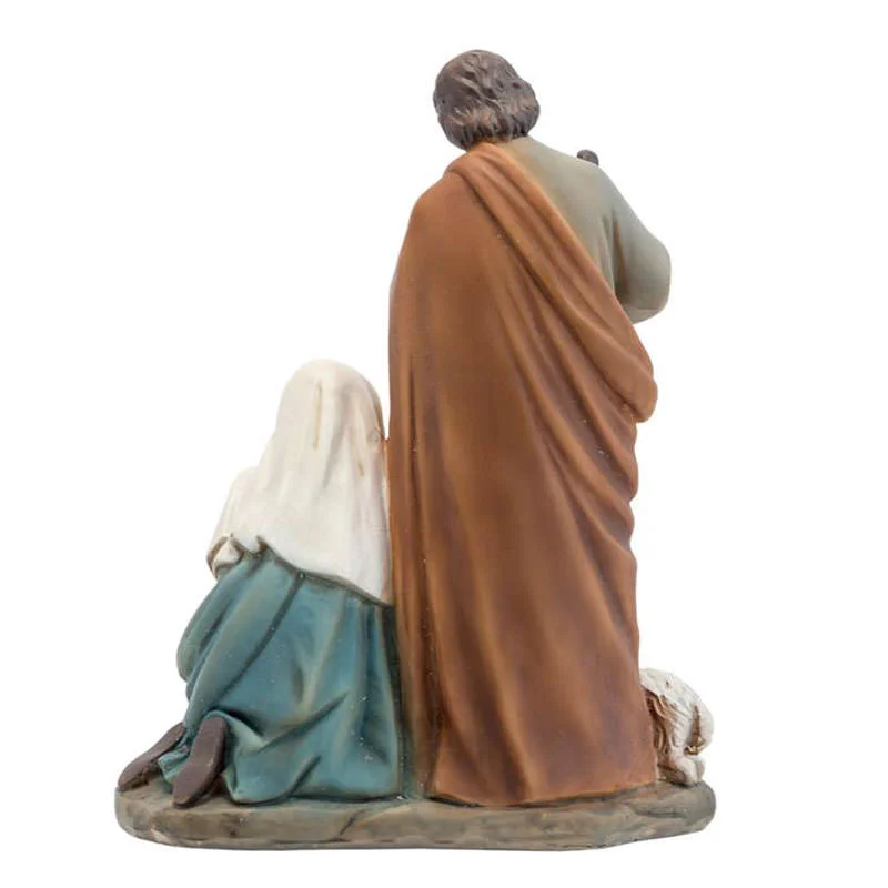 Beautiful sculpture of the nativity with sheep, made of decorated resin.