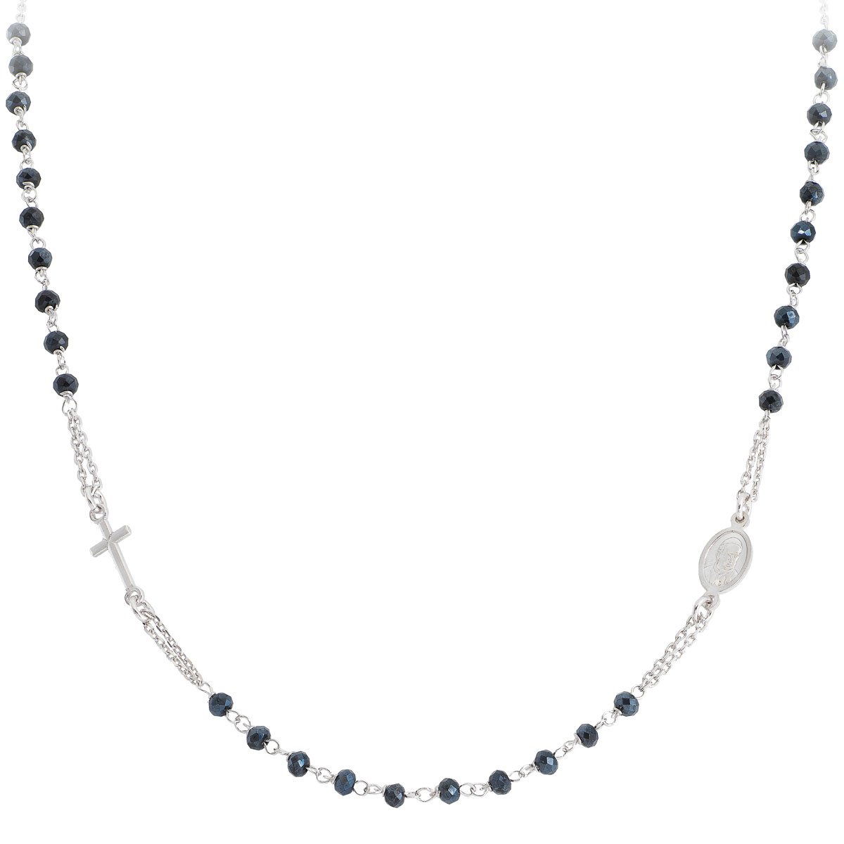 Choker with the representation of the Cross and the medal of Pope Francis, made in sterling silver 925 rhodium and gray crystal.