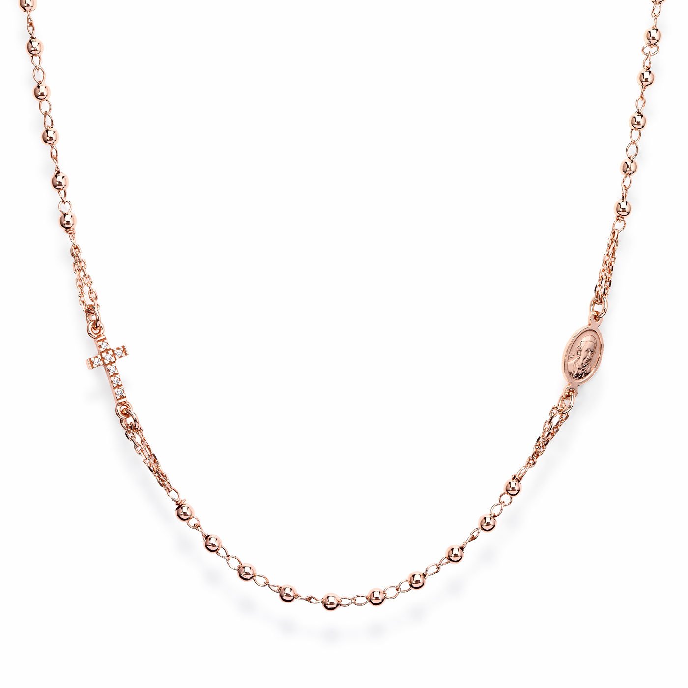 Necklace ‘Cross and Our lady of the Miracle’. 925 sterling silver and crystal. AMEN