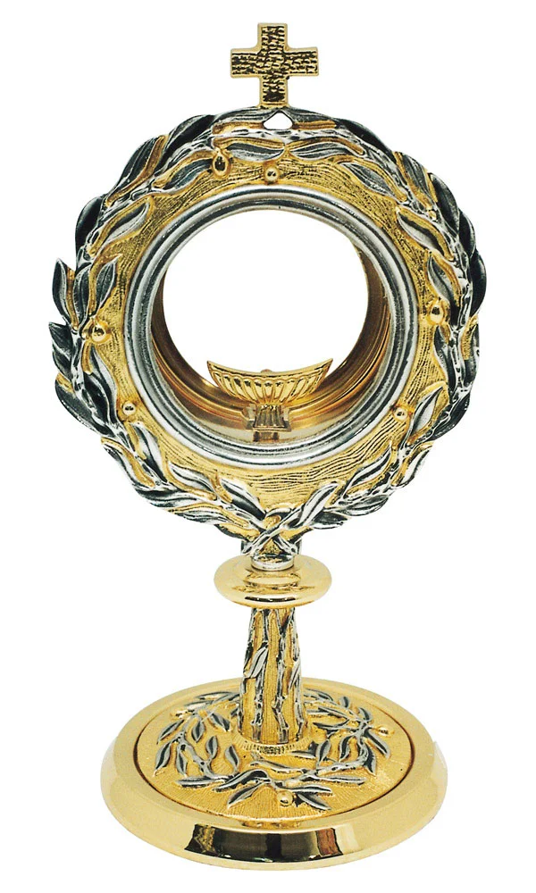 Custodia (ostensorio) en fusión de latón con ramas de olivo.