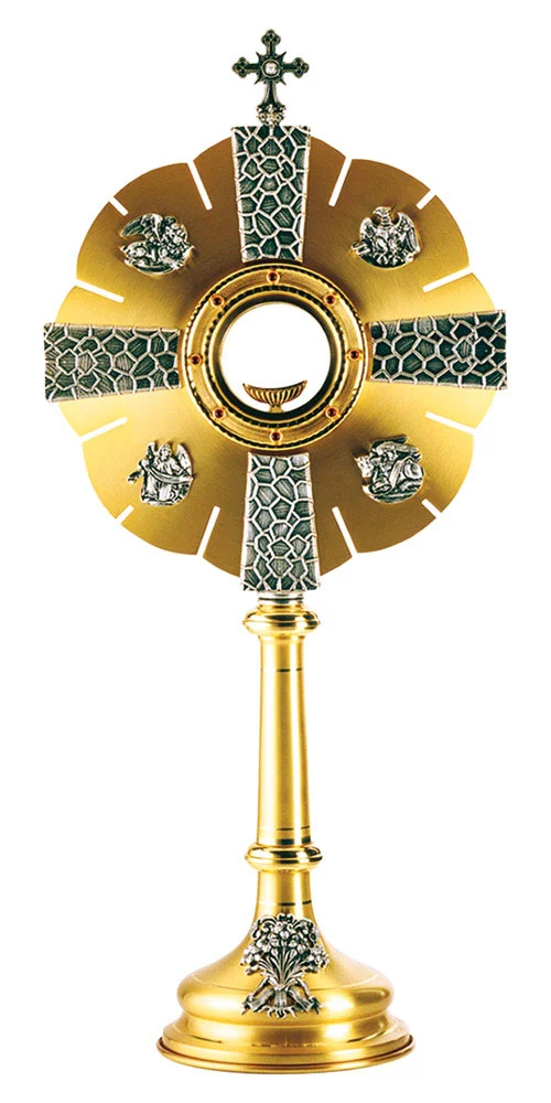 Custodia (ostensorio) en fusión de latón con evangelistas.