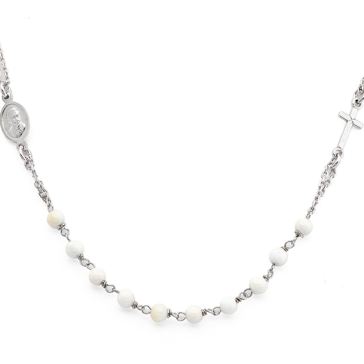Gargantilla con la representación de la Cruz y la medalla del Papa Francisco, realizada en plata de ley 925 rodiada y nacar.