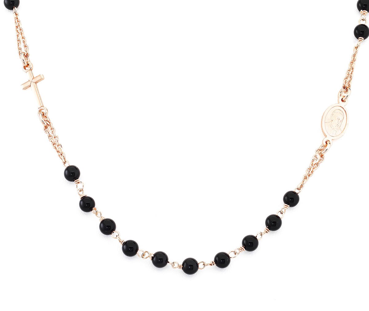 Gargantilla con la representación de la Cruz y la medalla de la Virgen Milagrosa, realizada en plata de ley 925 rodiada y agata.