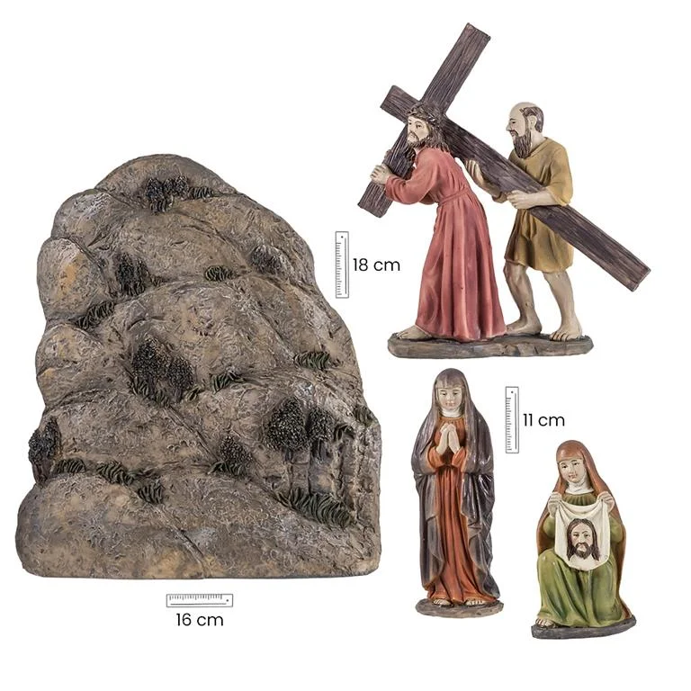 Esta imagen religiosa en resina destaca por su cuidada elaboración artesanal.