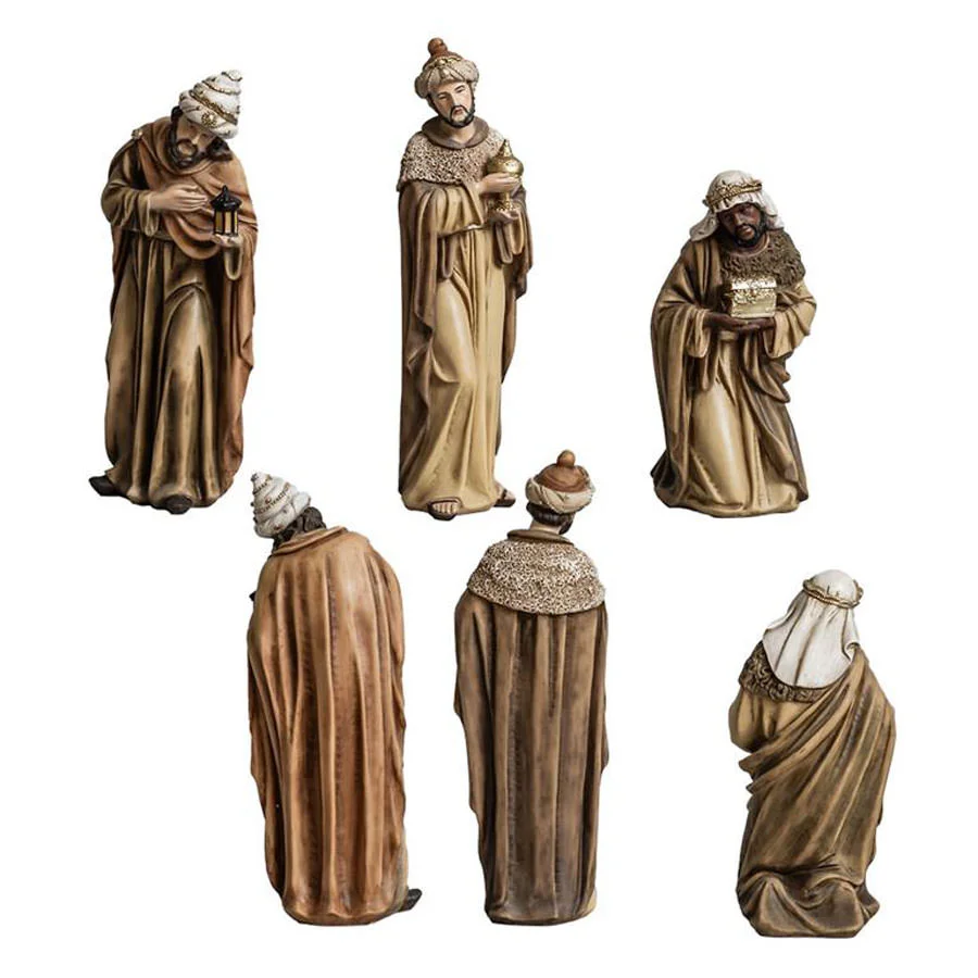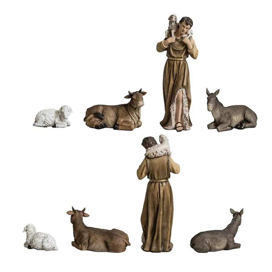Precioso nacimiento completo con 11 piezas, medida 36 cm, realizada en resina decorada.