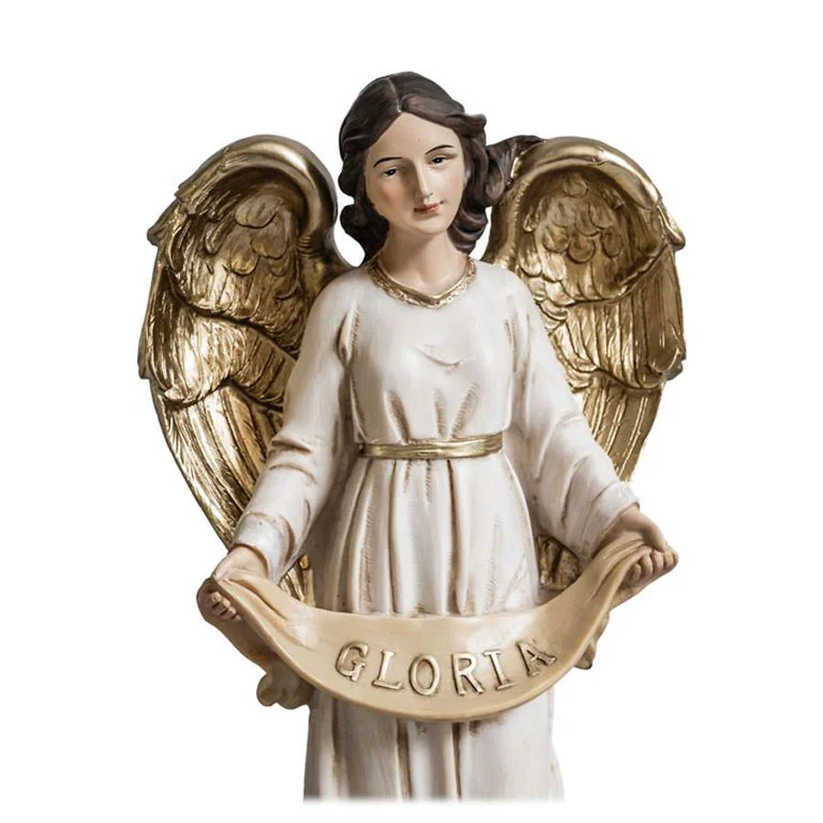 Misterio con portal, 11 piezas. 36 cm, pintado de forma artesanal. Nacimiento completo con angel, reyes y pastor con oveja.