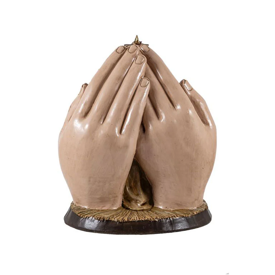 Preciosa escultura del Misterio en manos con angel, realizada en resina decorada.