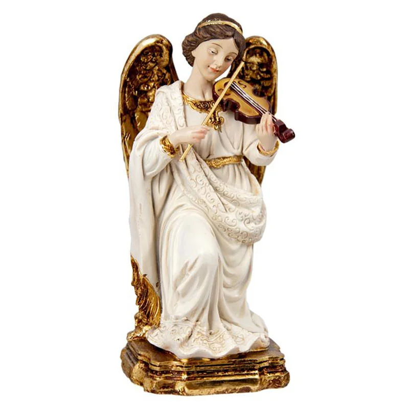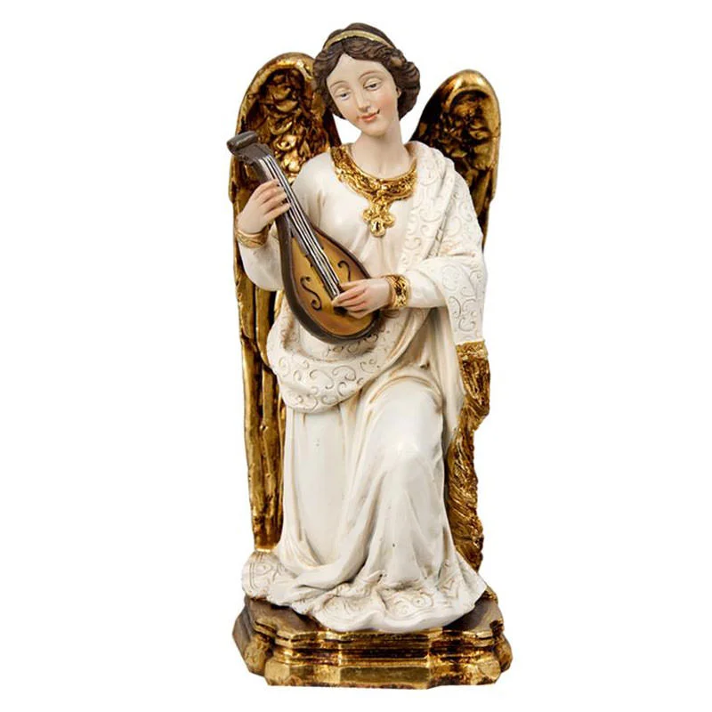 Pareja de 2 angeles musicales, sentados, pintados de forma artesanal. Material resina.