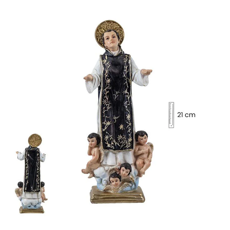 Esta imagen religiosa en resina destaca por su cuidada elaboración artesanal.