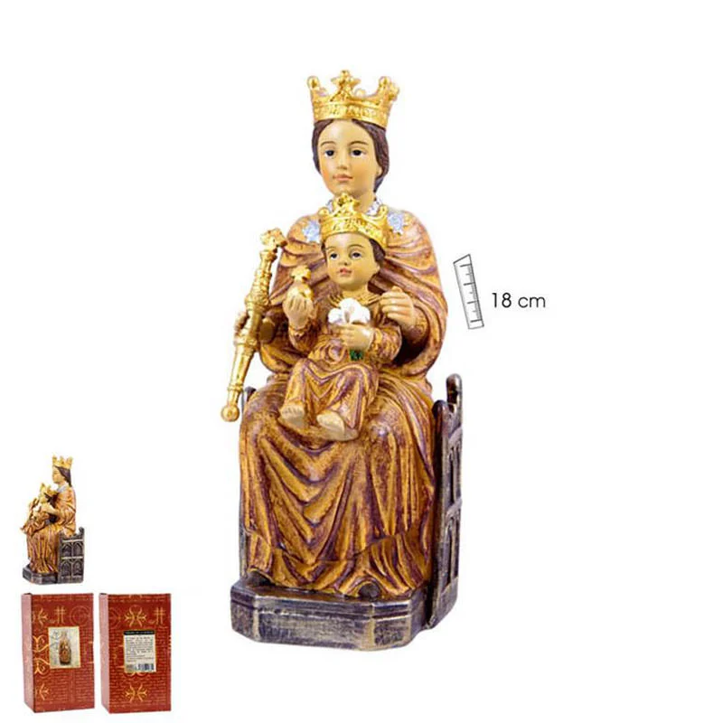 Escultura devocional realizada en resina destaca por su cuidada elaboración artesanal.